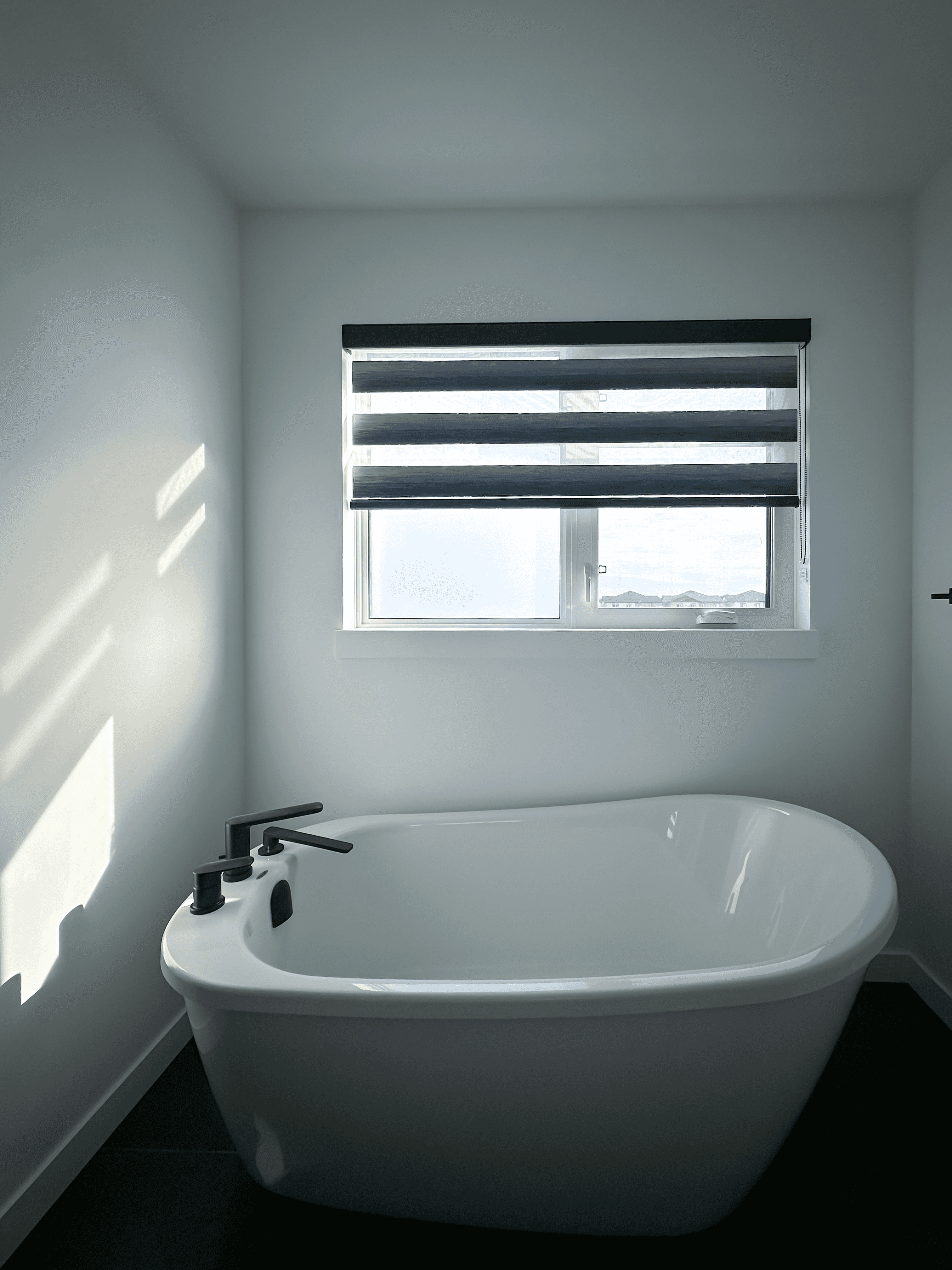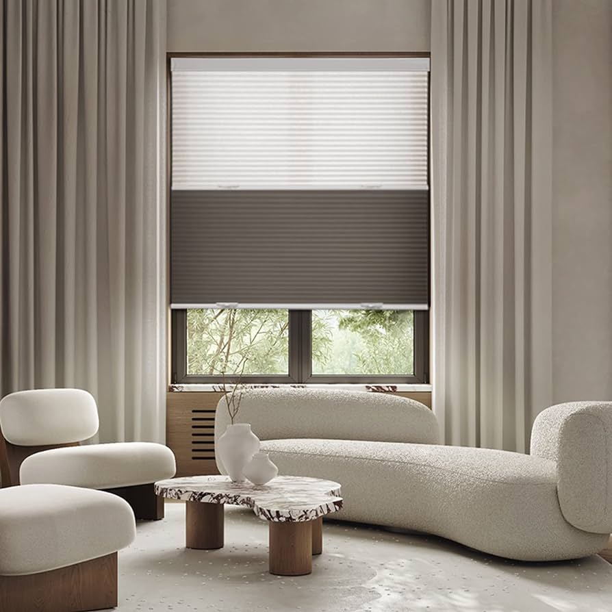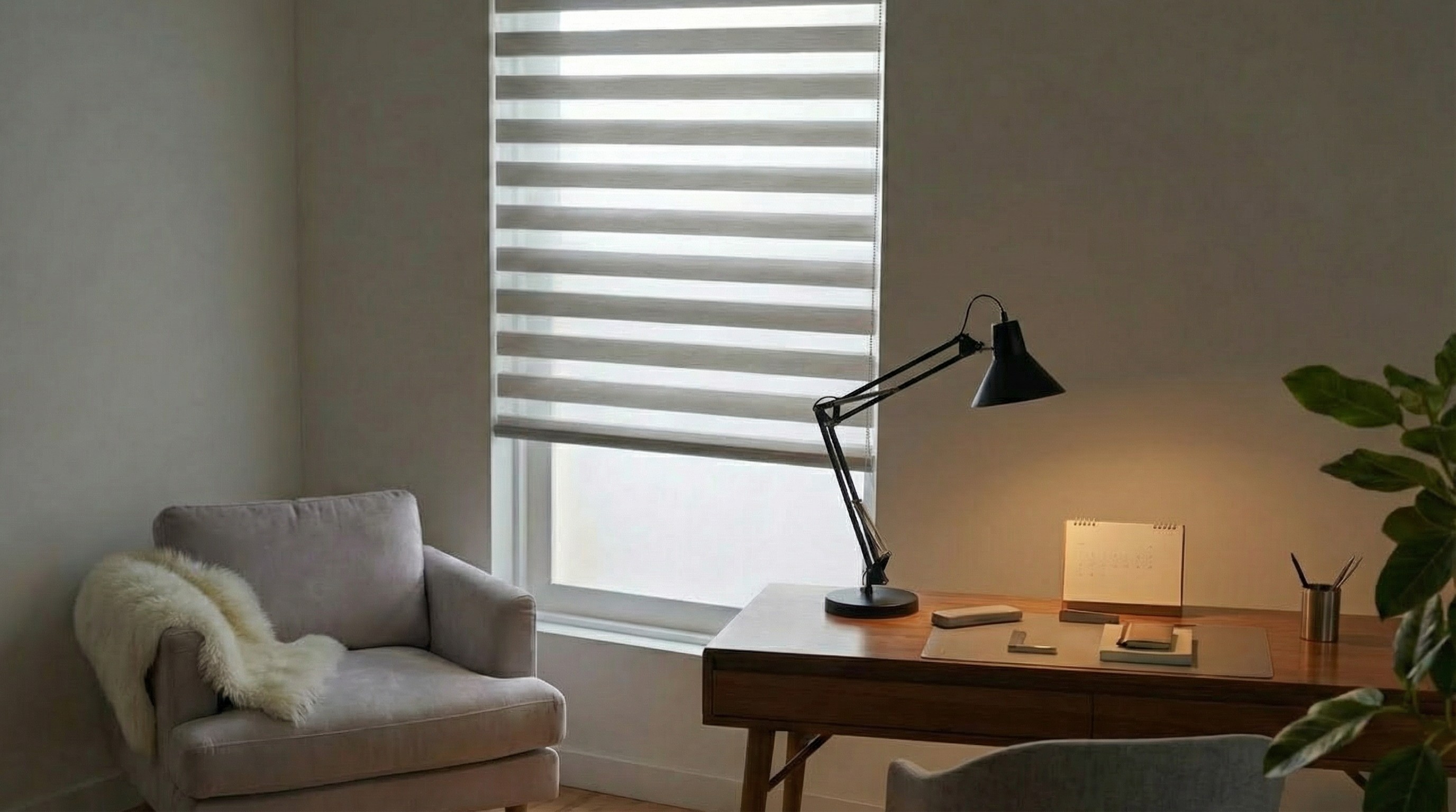 Zebra blinds (dual-layer shades) use alternating sheer and solid fabric bands that align to shift from view-through to privacy in one smooth motion. Built to your exact window sizes, they deliver refined style, UV protection, and superior light control while fitting neatly in tight recesses or spanning wide openings.